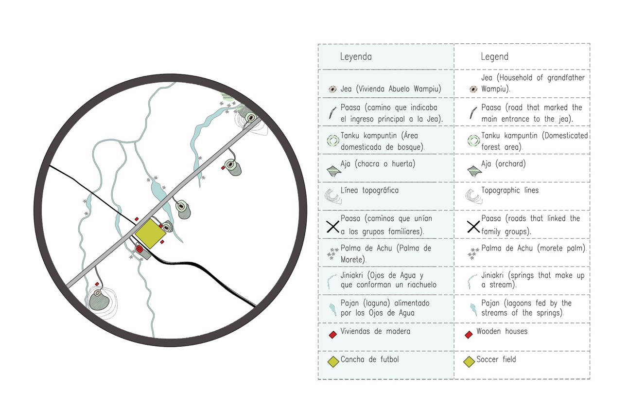 By realizing the magnitude and complexity of the Achuar planning system, I understood—through the memory of our lineage—that the Life Plan is the waimiakmauri of the Achuar; that is, the energy of Arutam, practiced through the actions and life decisions of the Achuar in their territory in pursuit of their children and future generations; it is the power of the dream of their lineage, trapped in the moments of ways (guayusa), natemamu or kasak (ayawaska moment), maikiua (floripondio), and tsanmamu (tobacco moment). Respect for the power and wisdom of Arutam enabled the elaboration of a spatial structure with Achuar relevance, which recognizes the presence of Arutam in the planning of the territory, based on the values of Etsa, Nunkui, Shakaim, Tsunki, through moments of Natemamu, Kasak, Maikiua and Tsanmamu, understanding the state of rationality that the human being has the obligation to reach when planning. This space of reflection was balanced by sharing the wayus moment before dawn.